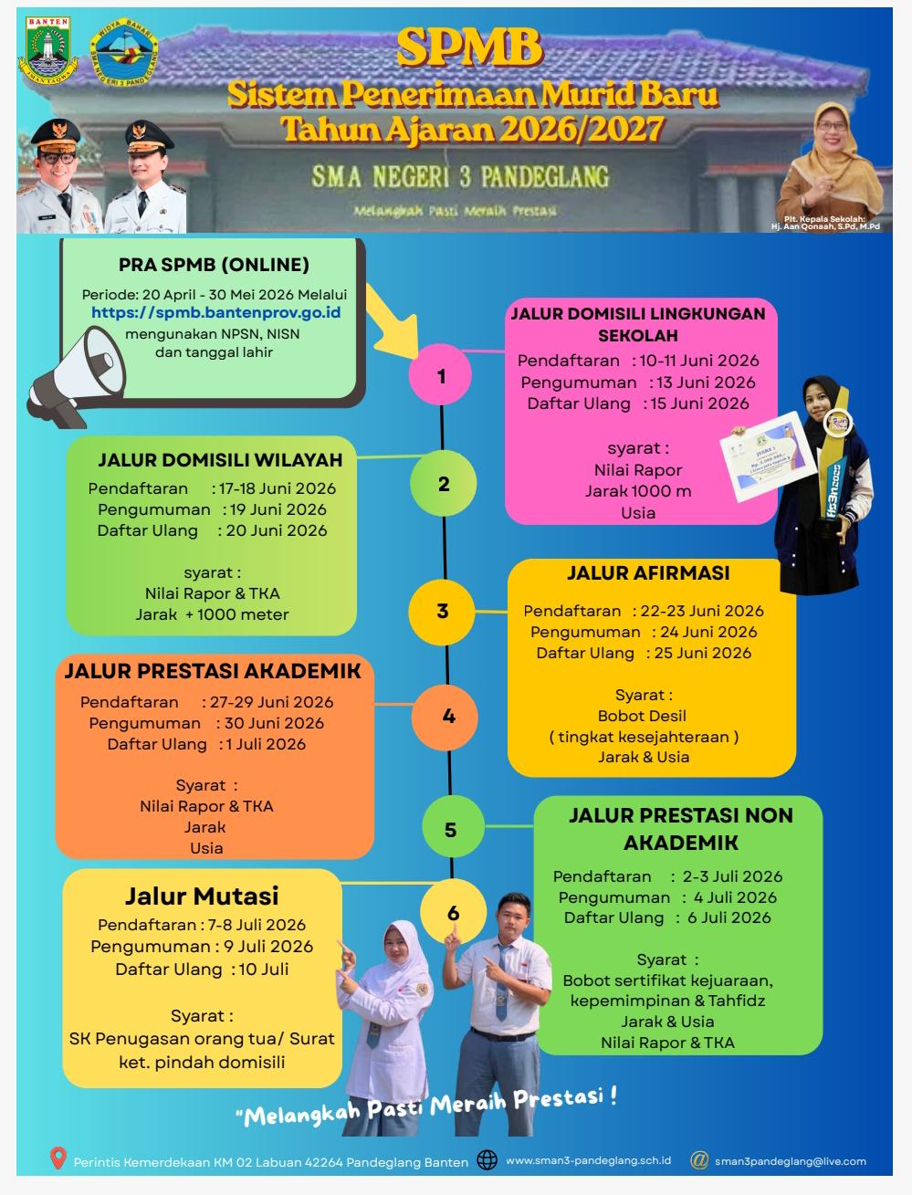 Kami ingin berbagi informasi seputar Sistem Penerimaan Murid Baru (SPMB) Tahun 2026 di SMAN 3 Pandeglang.