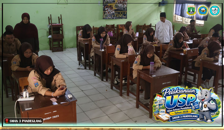 Pelaksanaan Ujian Satuan Pendidikan (USP) tahun 2026 untuk kelas XII di SMAN 3 Pandeglang menjadi salah satu momen penting yang menandai akhir perjalanan belajar siswa selama tiga tahun di bangku sekolah. USP sendiri merupakan bentuk evaluasi yang diselenggarakan oleh satuan pendidikan untuk mengukur pencapaian kompetensi siswa sesuai dengan kurikulum yang berlaku. Hasil dari ujian ini nantinya menjadi salah satu pertimbangan dalam menentukan kelulusan siswa, sehingga pelaksanaannya tentu dilakukan dengan penuh persiapan dan keseriusan.