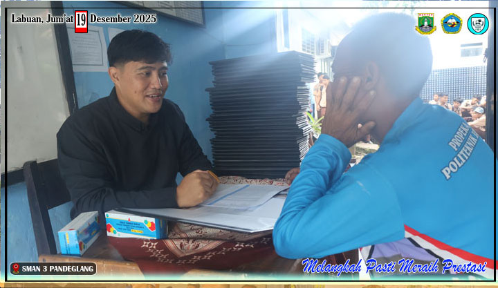 Hari Jumat, 19 Desember 2025 menjadi hari yang cukup berkesan bagi siswa-siswi SMAN 3 Pandeglang. Pada hari itu, sekolah melaksanakan kegiatan pembagian hasil pembelajaran semester 1 tahun 2025. Sejak pagi, suasana sekolah sudah terasa berbeda karena banyak orang tua, wali, bahkan beberapa anggota keluarga siswa yang datang ke sekolah untuk mengambil rapor.