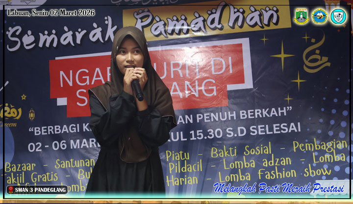 Bulan suci Ramadhan selalu jadi momen yang spesial, termasuk di SMAN 3 Pandeglang. Pada hari Senin, 02 Maret 2026, sekolah menggelar kegiatan Semarak Ramadhan Ngabuburit di SMAGALANG dengan tema “Berbagi Kebaikan di Bulan Penuh Berkah”. Kegiatan ini diikuti oleh seluruh siswa dan siswi dengan pendampingan dari dewan guru serta staf administrasi sekolah.